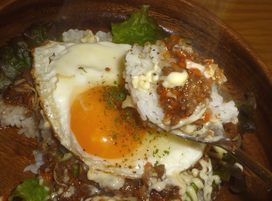 家庭料理ということでして、玉子の下には、肉とチーズが入っていいます。チーズだとわからなかったのですが、あったかいチーズ特有のビロ〜ンと伸びててきてわかりました。笑