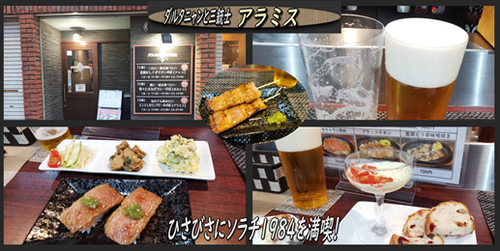 久々に函館市本町のの三銃士アラミスへ。自粛していたビール、ソラチ1984を生で飲むんで、気合を入れてきました。(^^)隊長得意の肉料理を肴に楽しみます。ふ〜飲みました。満足です!