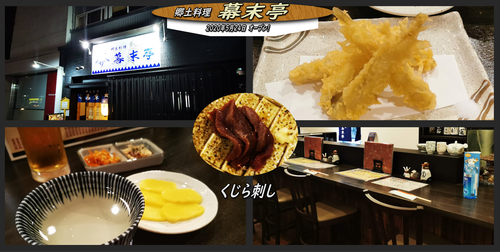 大門にオープンした「郷土料理 幕末亭」 函館大門にオープンした「郷土料理 幕末亭」。お店はお二人でまかなっていてフレンドリーで感じのいいお店です。鯨、ししゃも天などめずらしい料理もあり面白い。 今度は一次会から来てみたいお店です。 #おいしい函館応援団 函館大門にオープンした「郷土料理 幕末亭」。お店はお二人でまかなっていてフレンドリーで感じのいいお店です。鯨、ししゃも天などめずらしい料理もあり面白い。 今度は一次会から来てみたいお店です。 #おいしい函館応援団 続きを読む