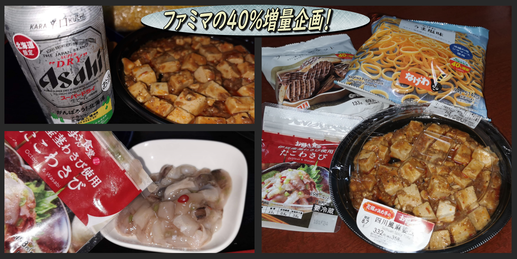 ファミリーマートの「お値段そのまま40%増量」でちょこっと ファミリーマートの「お値段そのまま40%増量」の企画がやっていて麻婆豆腐、たこわさびなどを。これ40周年記念ということでお得です。 ファミリーマートの「お値段そのまま40%増量」の企画がやっていて麻婆豆腐、たこわさびなどを。これ40周年記念ということでお得です。 続きを読む