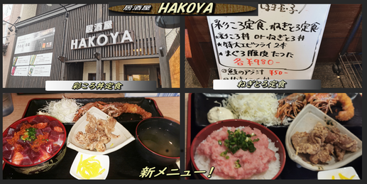久々の「HAKOYA」で新メニューを味わう! HAKOYAのランチ。新メニューの彩ころ丼定食は、自慢の丼と大きな海老フライ2尾・マグロの腹皮の竜田揚げでオカズは日替わり。相方さんはネギトロ丼定食で満腹委満足! HAKOYAのランチ。新メニューの彩ころ丼定食は、自慢の丼と大きな海老フライ2尾・マグロの腹皮の竜田揚げでオカズは日替わり。相方さんはネギトロ丼定食で満腹委満足! 続きを読む