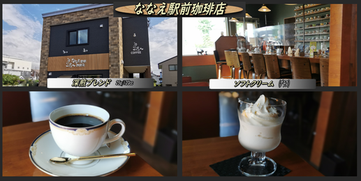 こだわりのコーヒーを提供する「ななえ駅前珈琲店」に! ランチの後は「ななえ駅前珈琲店」。ここは自家焙煎していてコーヒーが美味しいお店です。珈琲とソフトクリームを注文。 ランチの後は「ななえ駅前珈琲店」。ここは自家焙煎していてコーヒーが美味しいお店です。珈琲とソフトクリームを注文。 続きを読む