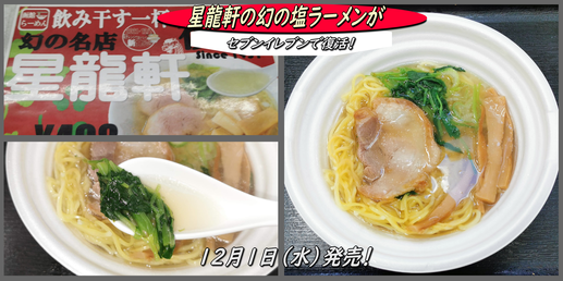 星龍軒のあの「幻の塩ラーメン」がセブンイレブンで復活! 星龍軒のあの「幻の塩ラーメン」が12月1日にセブンイレブンで復活! 特徴の三つ葉はしっかり入っていて麺はストレート。星龍軒店主が監修した美味しい塩ラーメンです。 星龍軒のあの「幻の塩ラーメン」が12月1日にセブンイレブンで復活! 特徴の三つ葉はしっかり入っていて麺はストレート。星龍軒店主が監修した美味しい塩ラーメンです。 続きを読む