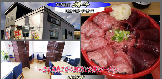 北斗市商工会の「3割引とお得なクーポン」で、鮪斗の本鮪丼を!