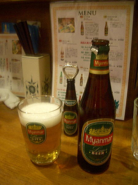 | アジアンキッチン「チェーズ」に行きました。店主は、ミャンマー出身ですが、アッシより日本語が達者です。奥様は、年上の日本のカミさん女房とか。隣に座っていた方は、親戚ということで隣席同士で盛り上がりました。これが「横丁」の魅力のひとつかもしれません。 ビールは、まずミャンマーのビールからですが、けっこう薄めの味で、いくらでも飲めるような味でした。ビールから思う遠くのミャンマーでした。 東南アジアでは、水代わりにビールを飲んだりするので、このような味かなと勝手に思いました。次にお薦めの、「バーバーバー」、さらにシンガポールの「タイガービアー」を飲みました。ひさびさの味でした。また一軒、いきつけの店が増えそうです。 | |