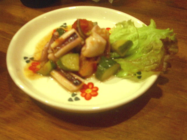 | イカとトマトときゅうりのアジア風炒め物 | |