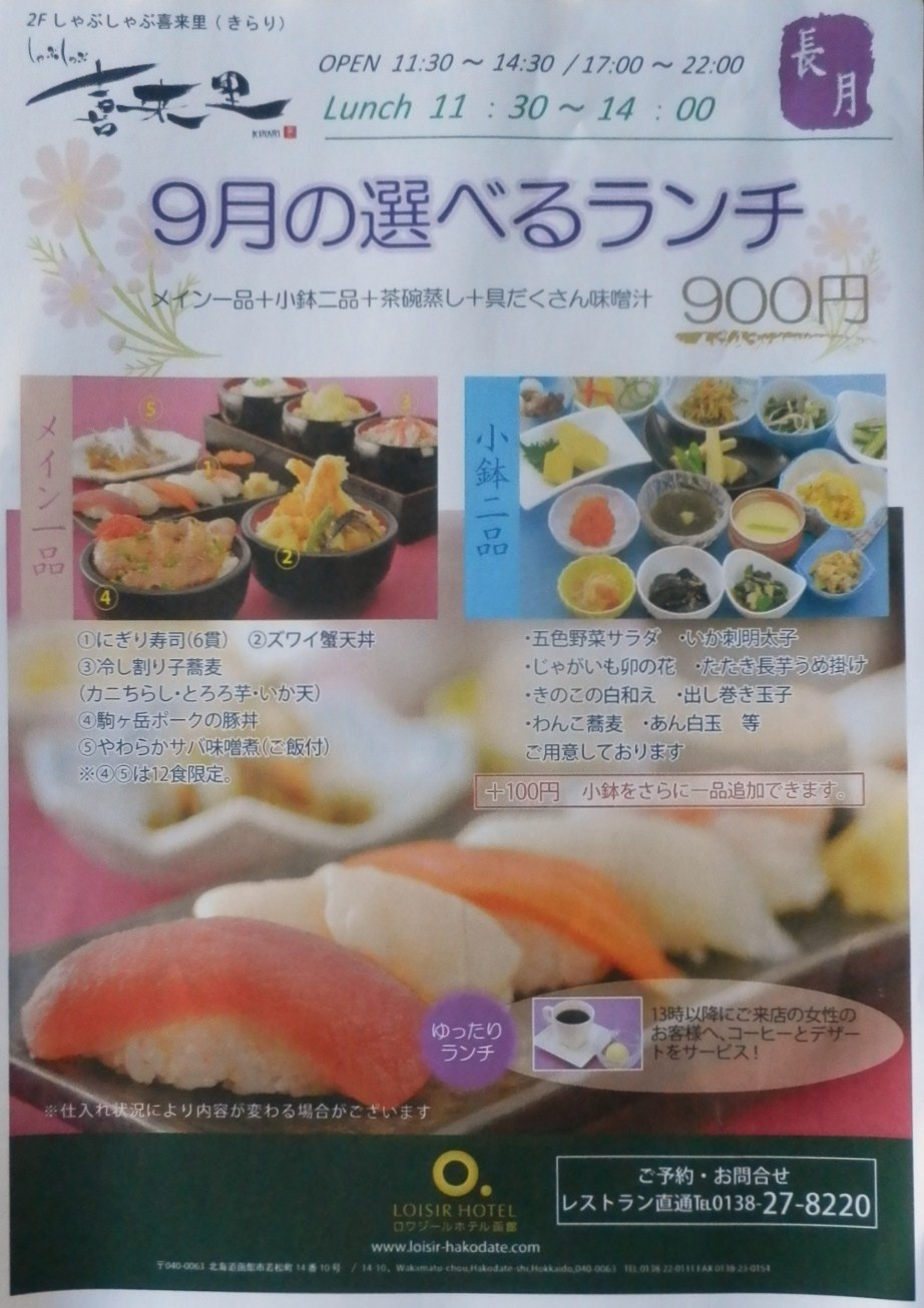 この日のランチは、函館駅前のロワジールホテルの中にある「しゃぶしゃぶ喜来里」です。