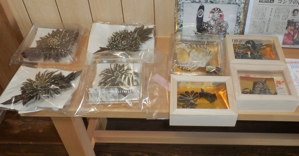 玄関には、これが置いていました。女将さんに聞いてみると、昆布で作ったアートだということです。良く見ると、これは見事なものでした。販売もされています。1500円くらいからあったようです。作成した方の新聞記事もありました。