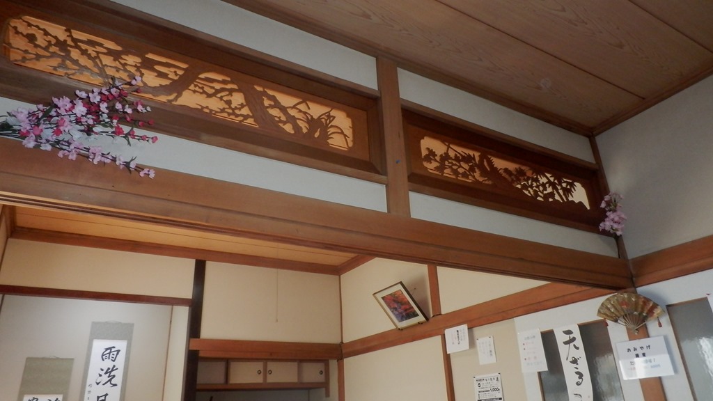 この欄間もいいもんです。女将さんのこの花もオシャレです。オヤジ、しっかり見ています。(^^)