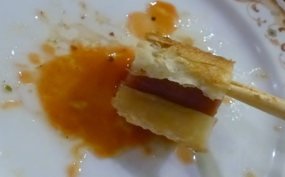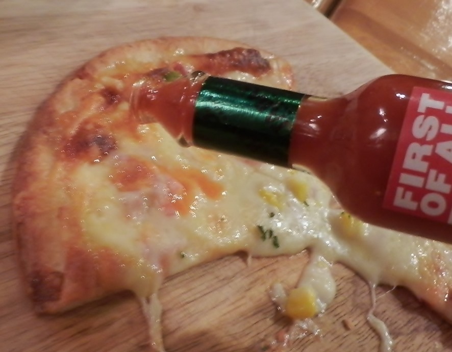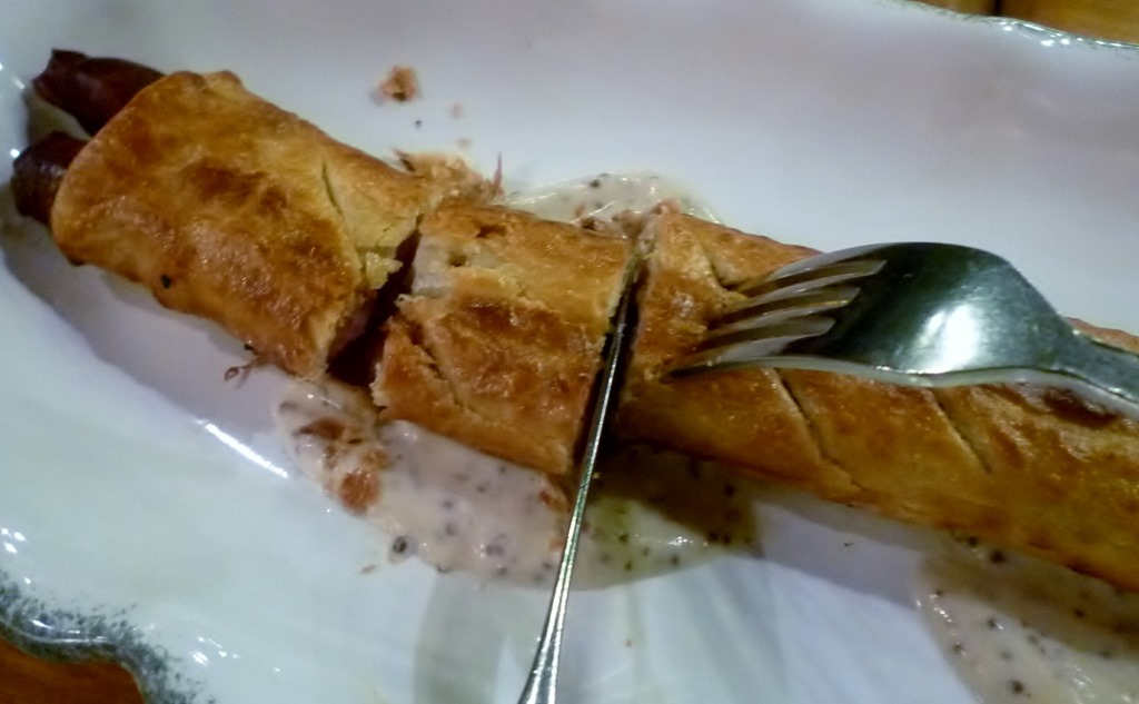 ソーセージとパイの組み合わせは、初めて味わったのですが、刺激を求めてタバスコをかけてピリっとさせて味わいました。 (^^)
