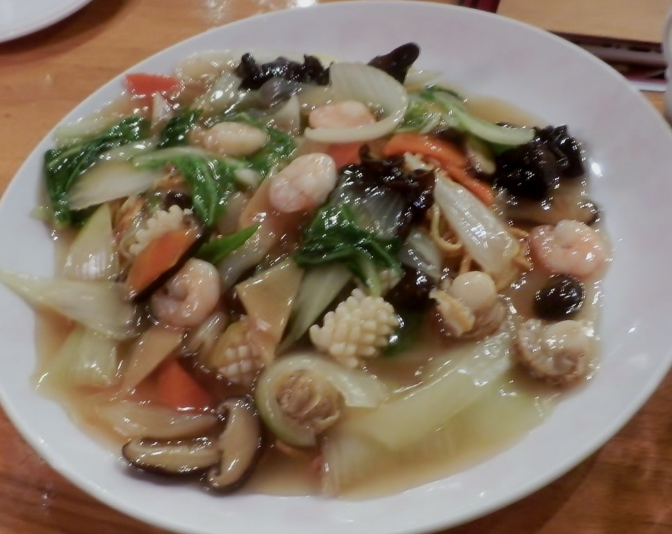 シーフードあんかけ焼きそば 1260円でして、海の幸たっぷりの人気メニューだそうです。