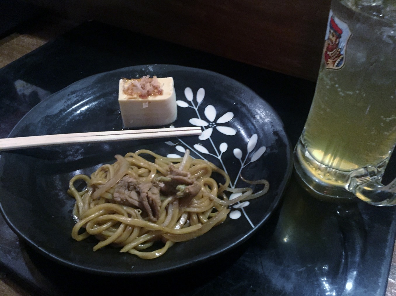 ようやく着席でして、ピンチョスは、黒石風やきどばと黒石の豆腐です。
