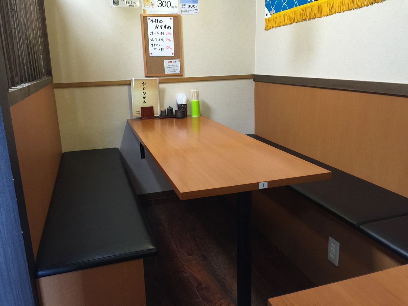 店内は、細長くなっていまして、こちらは、ボックス席です。