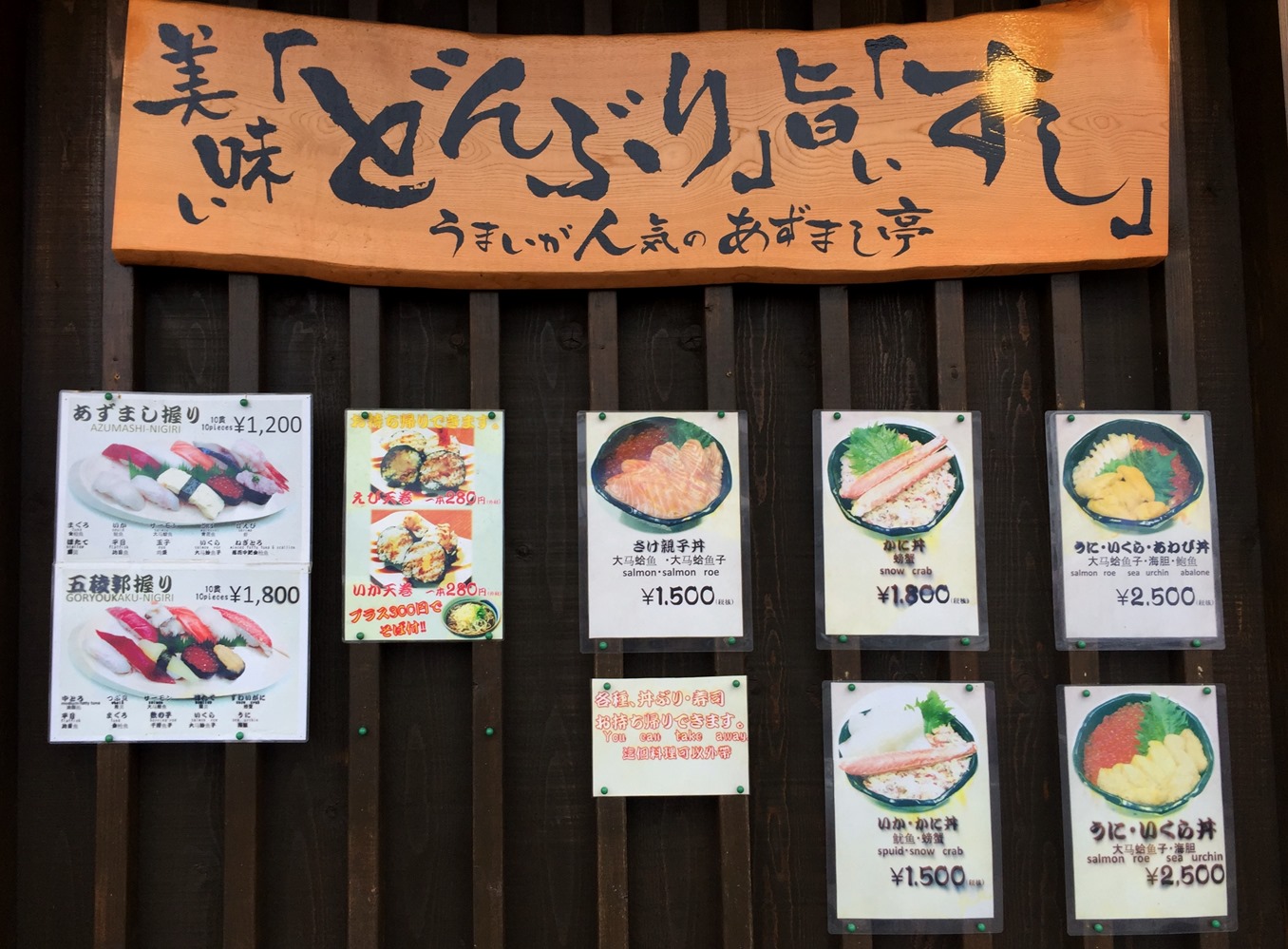 お店が少々分からず、近くのお魚の御店のお兄さんに聞いたら『あずまし亭ね〜…よく聞かれるけど知らないんだよね…新しい所かなゴメンね』と返されました。明らかに意地悪で教えてくれない感じ。ウチの店で買わないヤツには興味ないってって感じです。