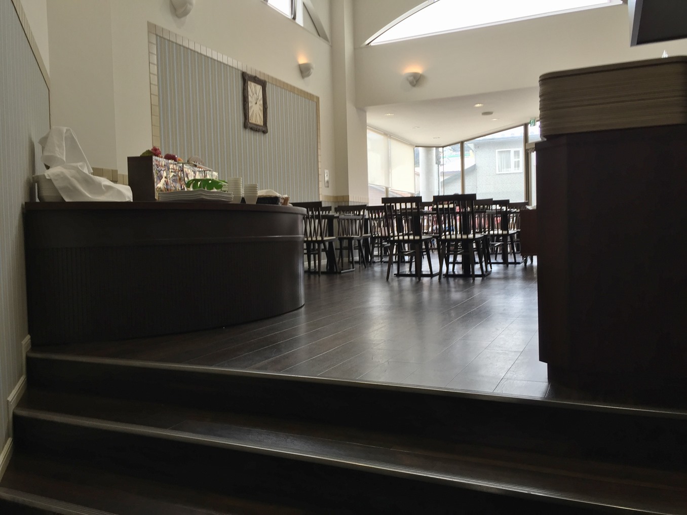店内です。窓側のいい席の写真は、先客がいらしていたのでありません。