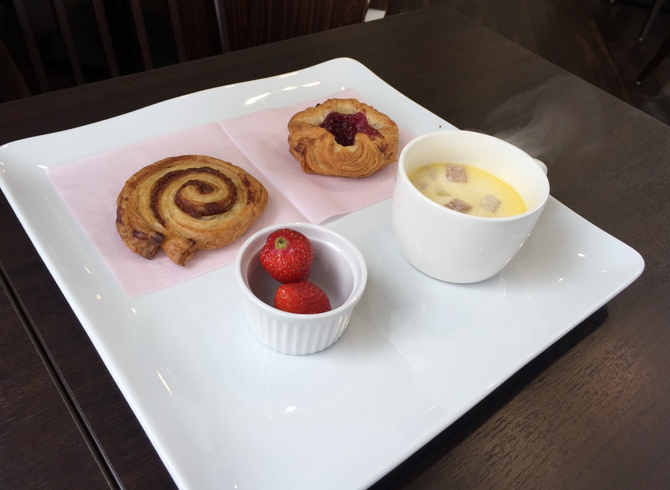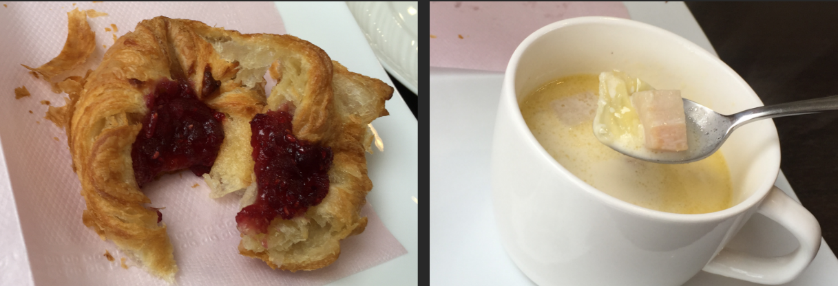 パンかクッキーを2つ選びまして、スープかコーヒーもしくは紅茶となっています。