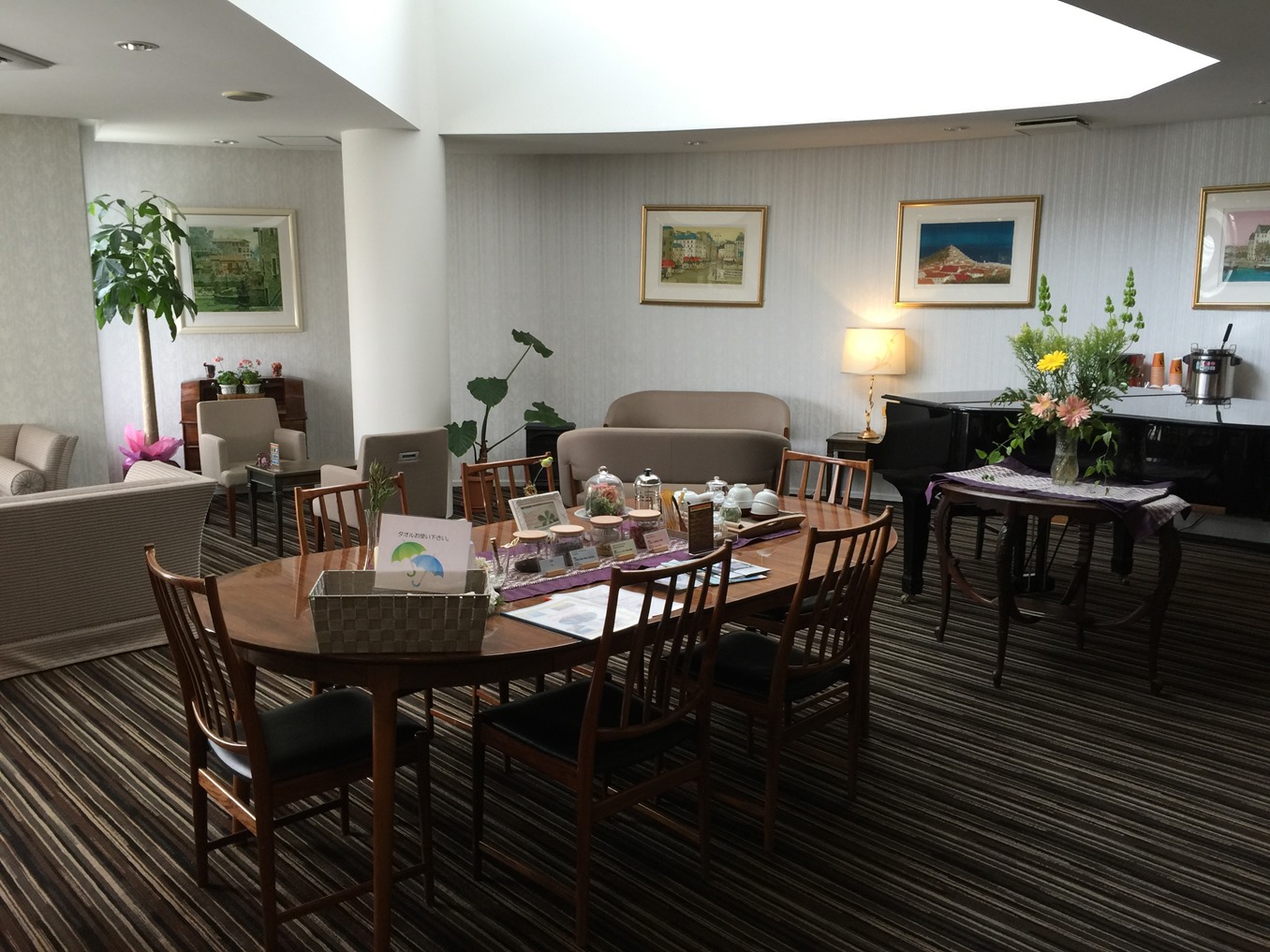 ホテルの中のロビーです。グランドピアノも置かれていまして、調度品もおちつきます。