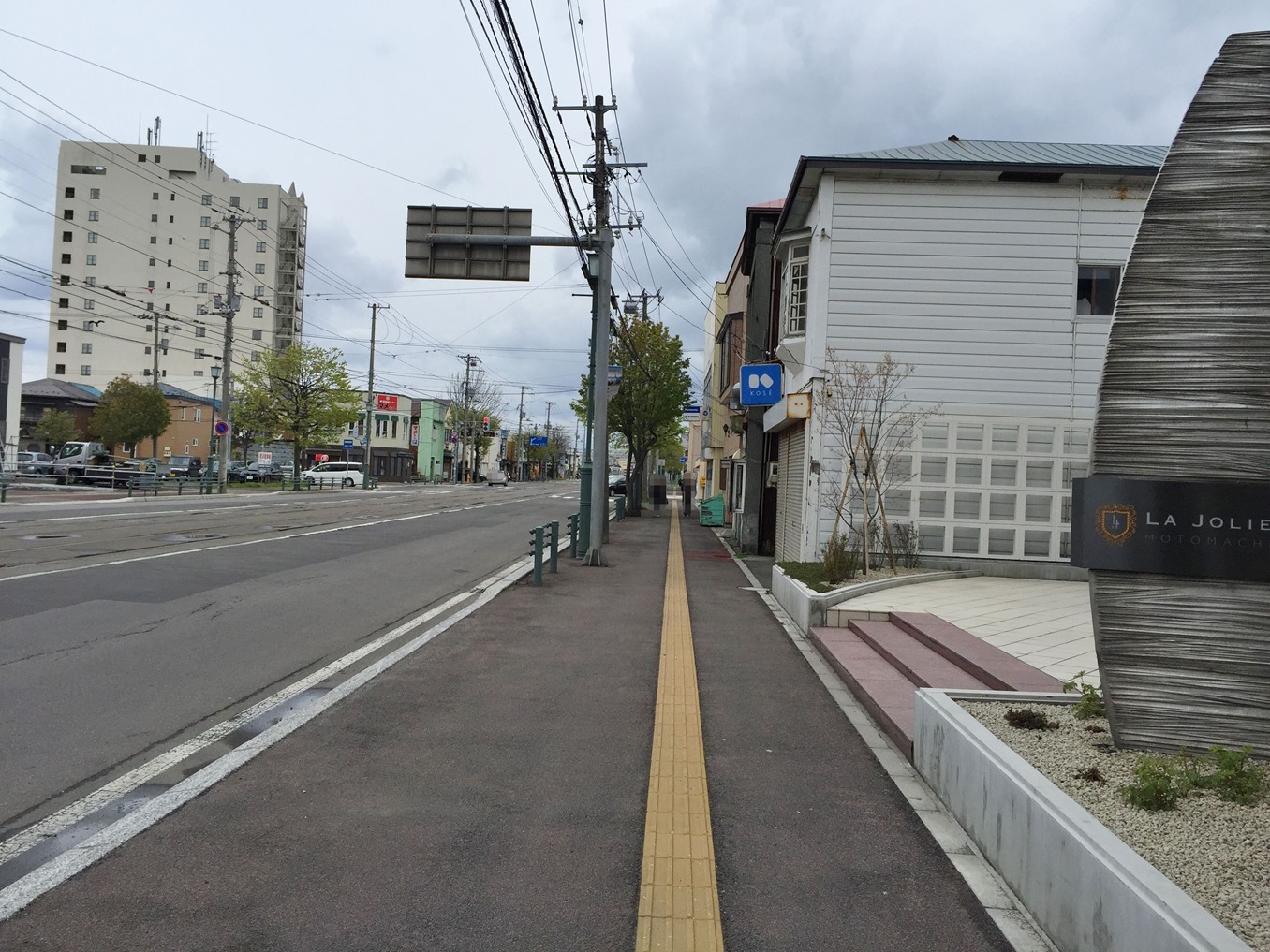 ホテルの前から見た宝来町の電車道路