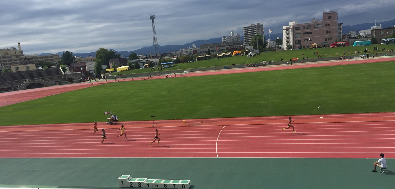 陸上競技場で、「第40回道南中高新人陸上兼記録回第一戦」だそうです。