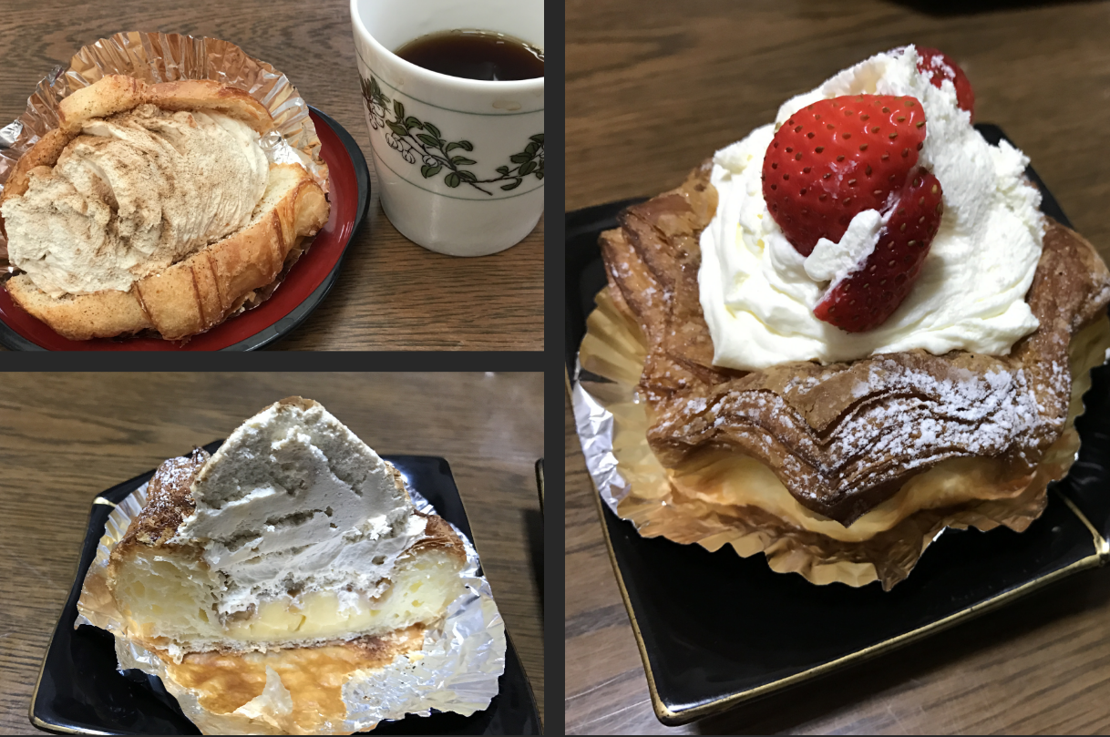 モカクリームコロワッサン 124円(税込)、フルーツ・ドゥ・パリ167円(税込)、もうひとつは、多分、パリジェンヌモカ 151円(税込) と