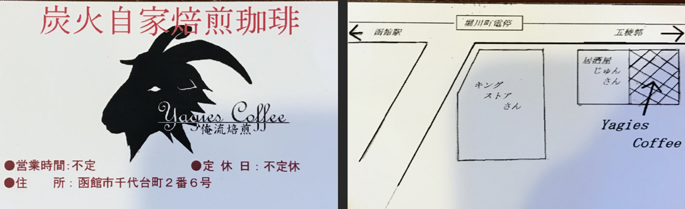 近くに行ってみてみると「Yagies Coffee」 ヤギーズカフェとしっかり描かれていました。