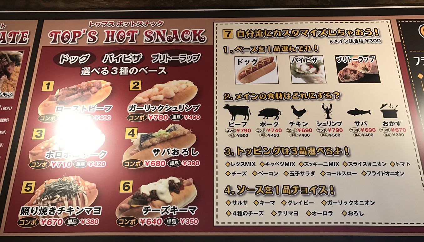 ホットスナックのメニューです。