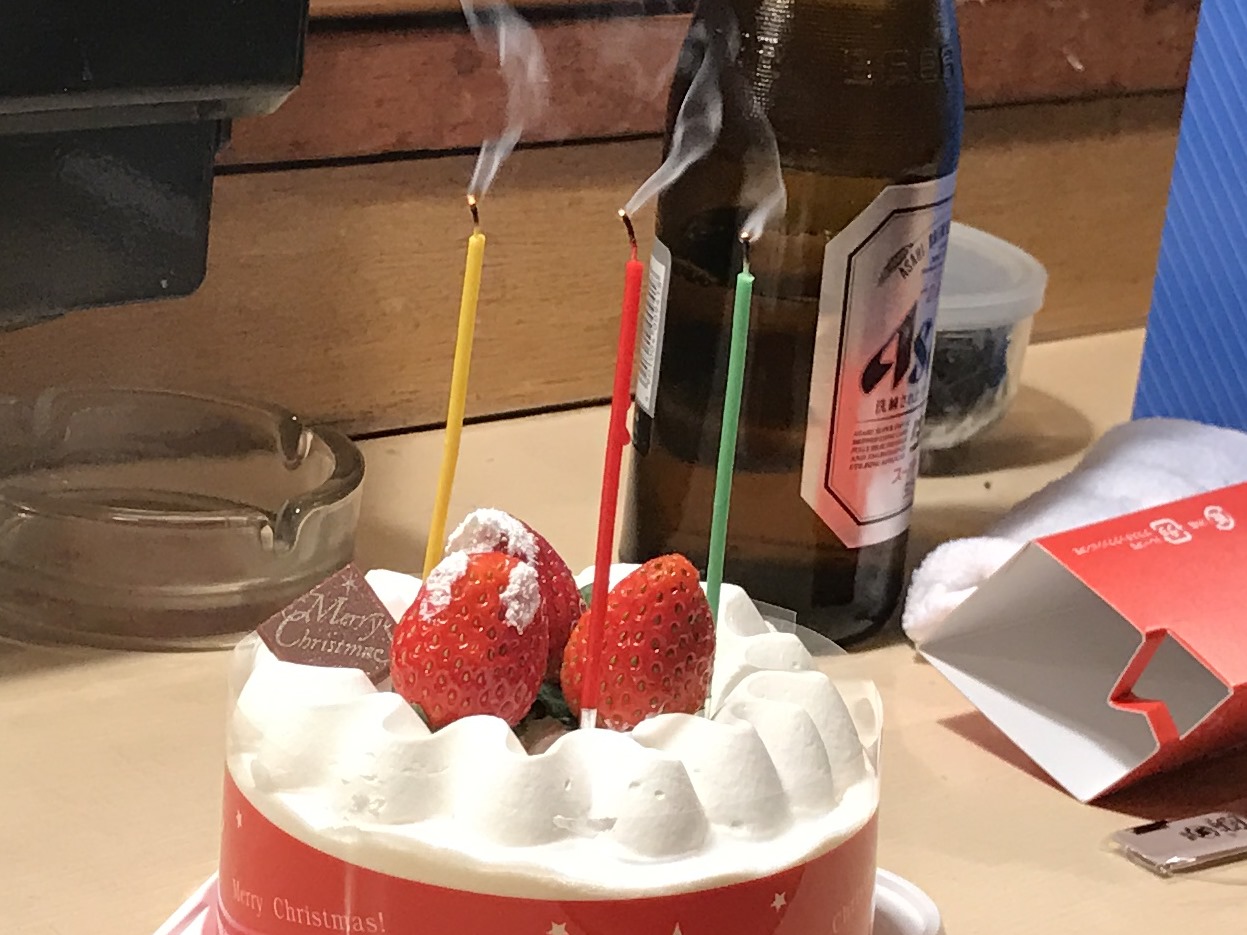 最近、一緒に飲んでいるEさんがここにいるということを聞いて、この日が誕生日だという彼女にE、セブンイレブンでケーキを買っていきました。