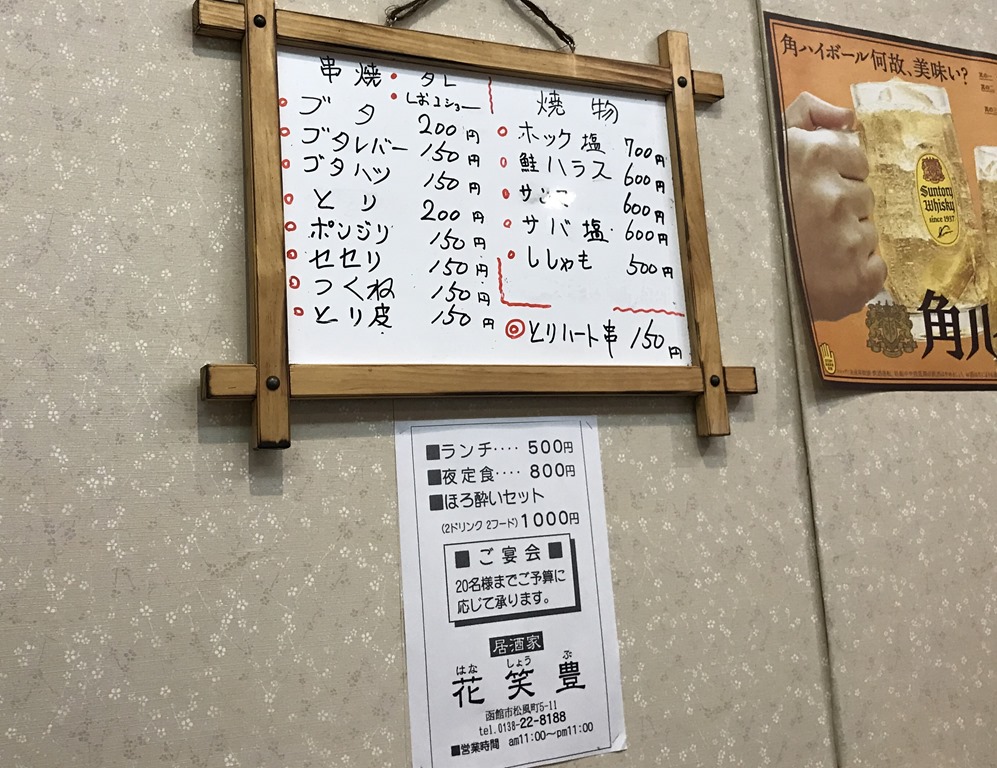 函館大門の「居酒家 花笑豊」での飲みです。”はなしょうぶ”と読みます。
