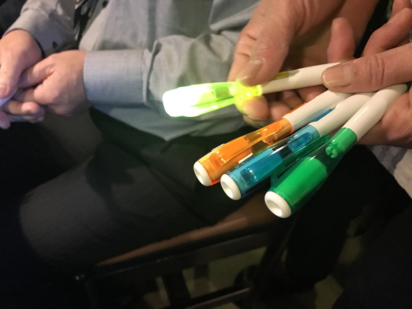 このLEDライトがついているボールペンの粗品もいただいてしまいました。