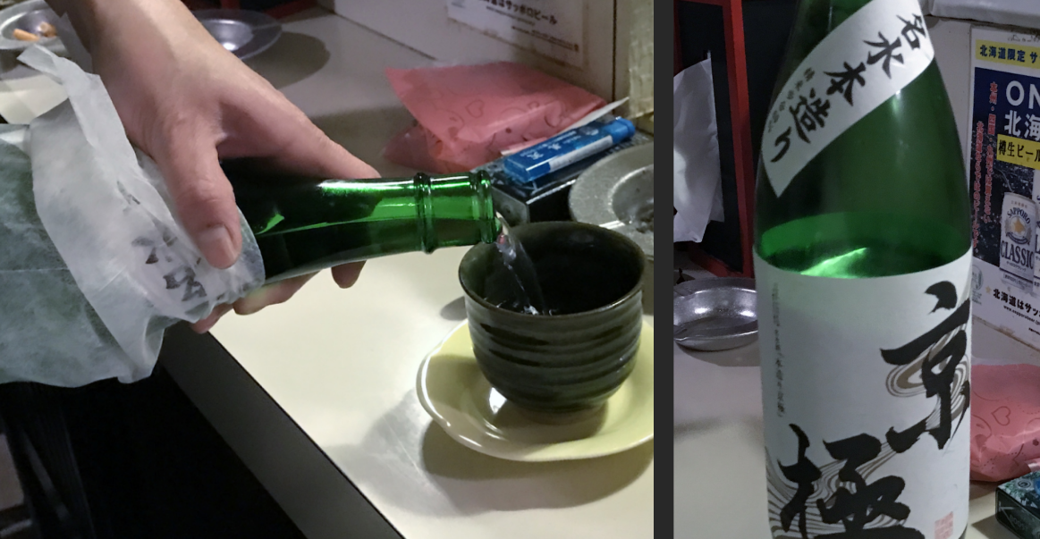 日本酒は、北海道の酒、「京極」 名水本造り。600円