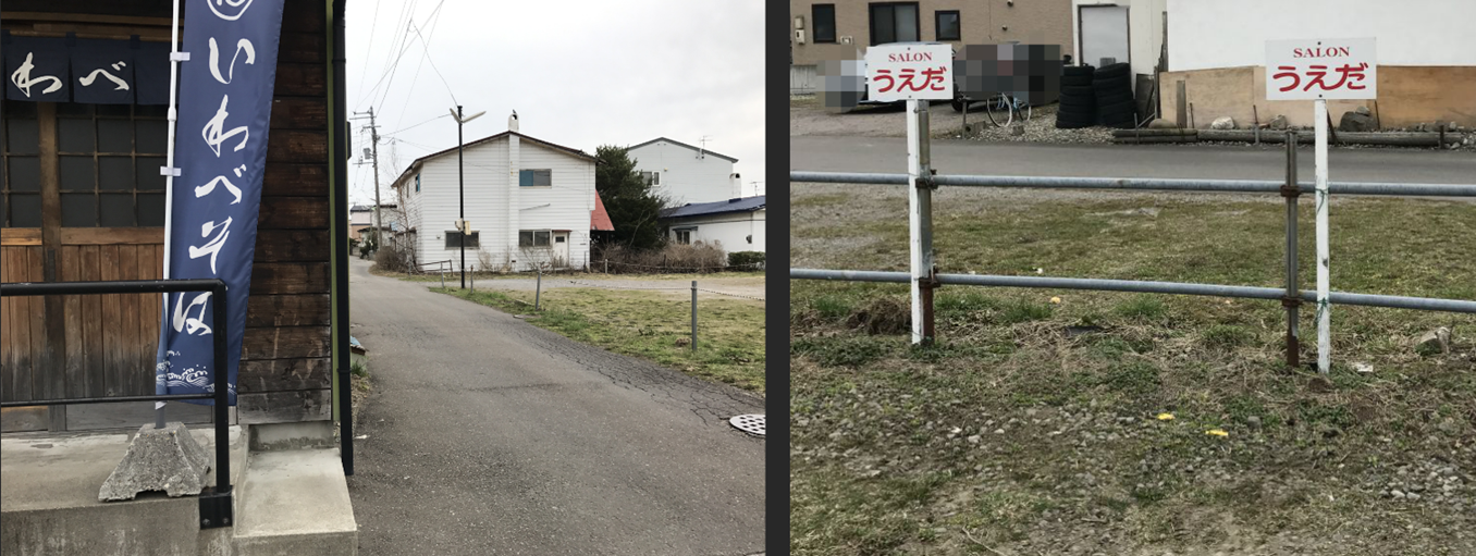 駐車場は、お店の右手の小道を入って左で、この「SALON うえだ」さんのところです。