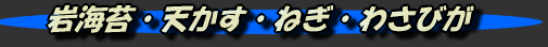 看板のお店の冠をつけた、いわべそばは、岩海苔、天かす、ねぎ、わさびが入っています。
