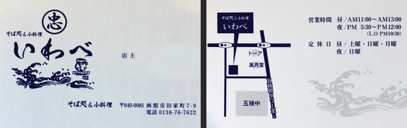 店主さんから伺ったのですが、店名の”いわべ”は福島町に岩部と言うところがあるそうでして、出身がそちらで、その地域から名前を取ったと言うことです。