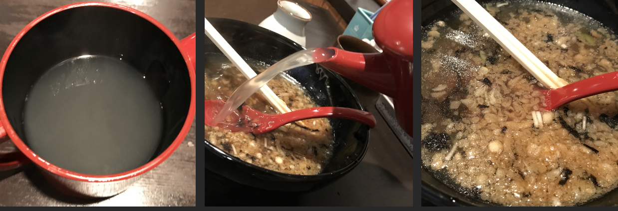 そば湯は、はじめから出されきまして、食べ終わった後にいれます〜。