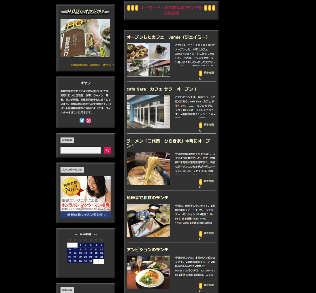 と入れてやると、函館市本町のランチ情報がでてくるんです。