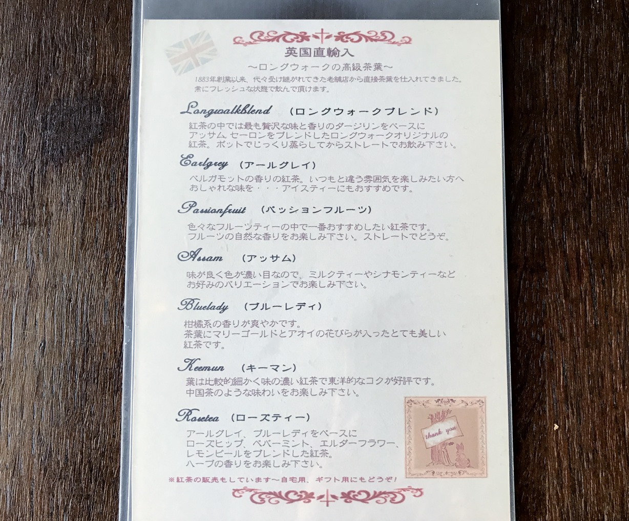 セットの紅茶は、この中の6種類から選びます。とありましてが、ここにあるメニューは7種類なんです。