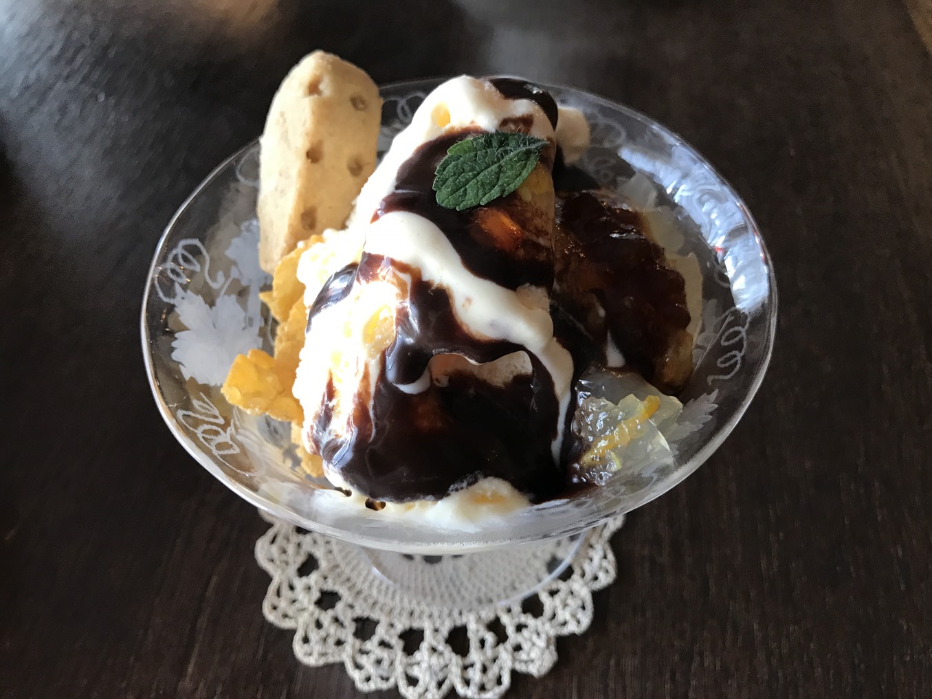 ミント、自家製ショートブレッド、セヴェルオレンジのジャム&ジュレ、チョコレート、アイスクリーム、フレークと、こだわりのアイスです。 ![]()
