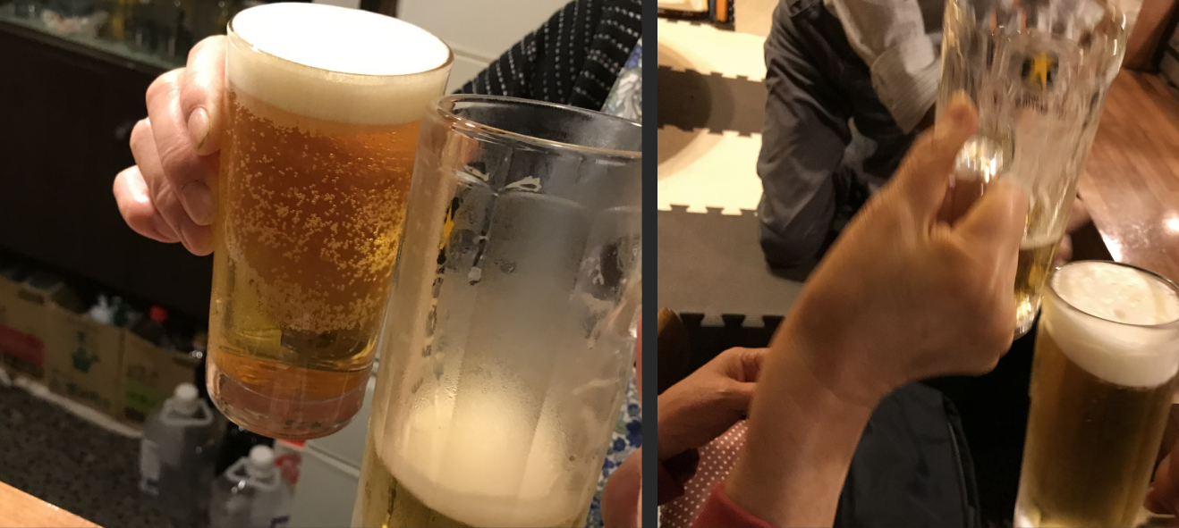 ママさんと乾杯、お隣の常連さんと、あっこさんの旦那さんと乾杯です。