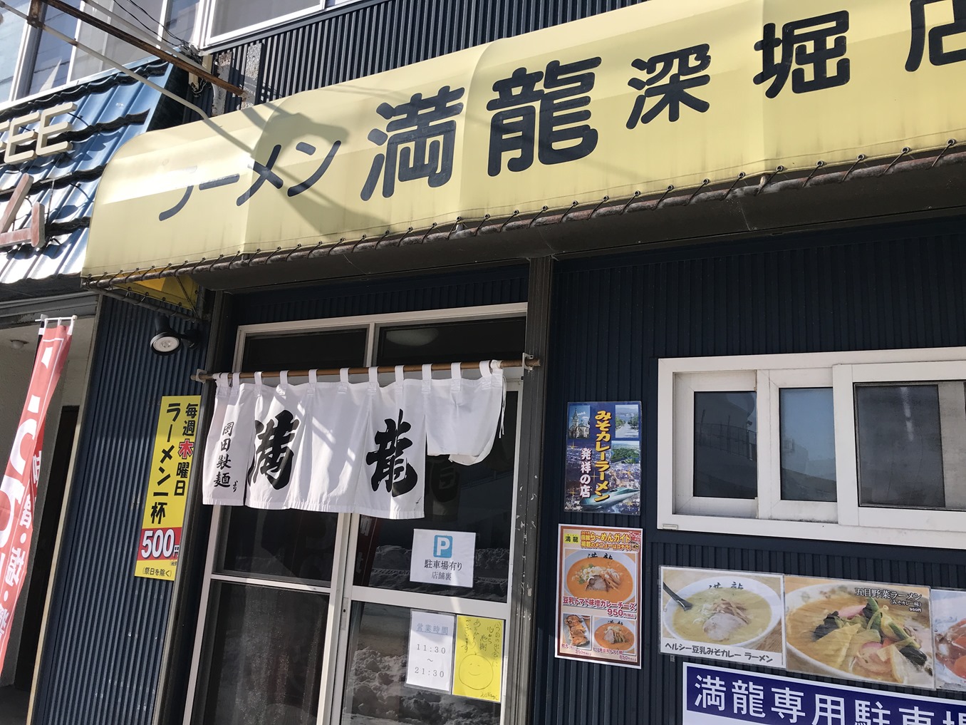 今日は木曜日でしたので、久々に「ラーメン満龍」のワンコインラーメンです。