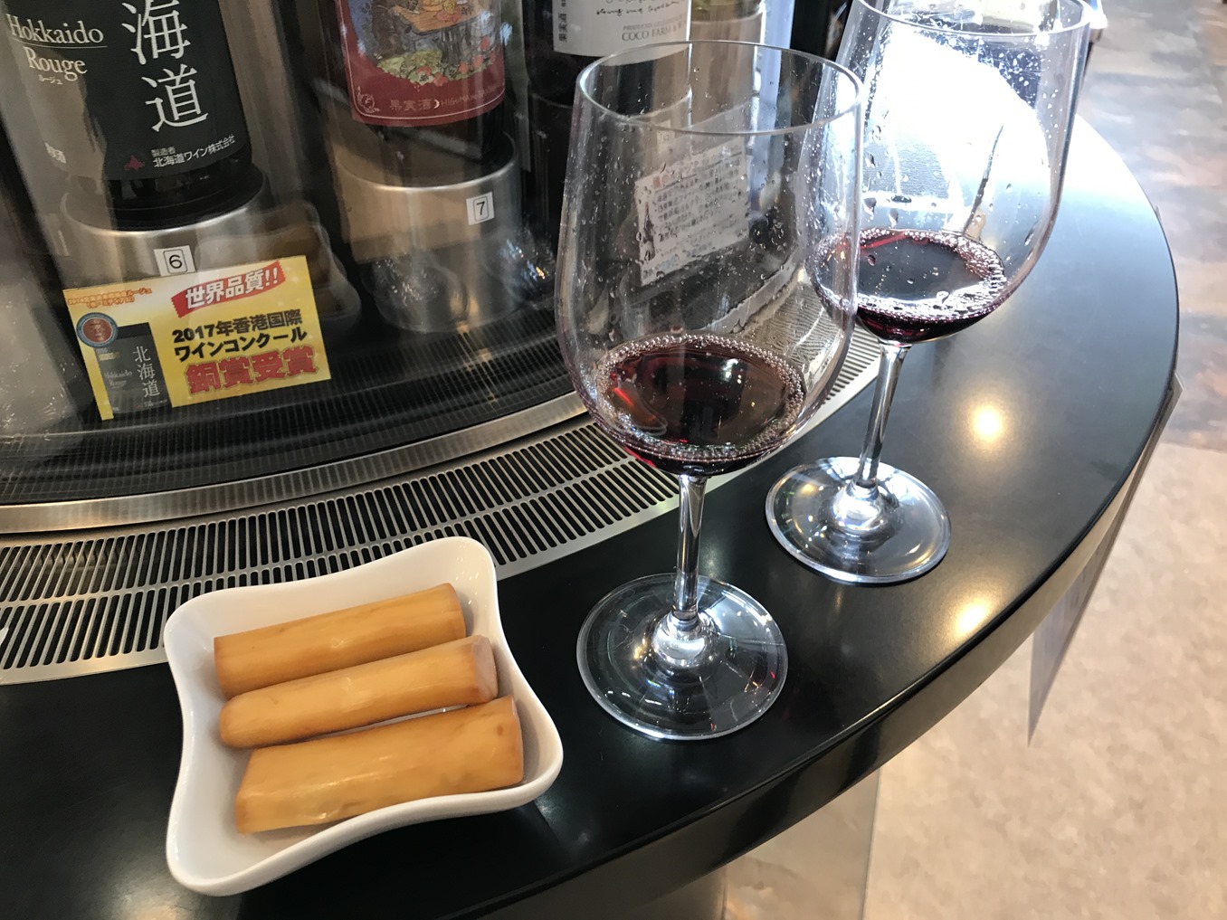 目指すは、駅すぐ横の観光交流センター別館のここ「NORTH SAKE&WINE 酒舗 稲村屋」さんのワインの試飲です。ここには多くのワインボトルが入っています。