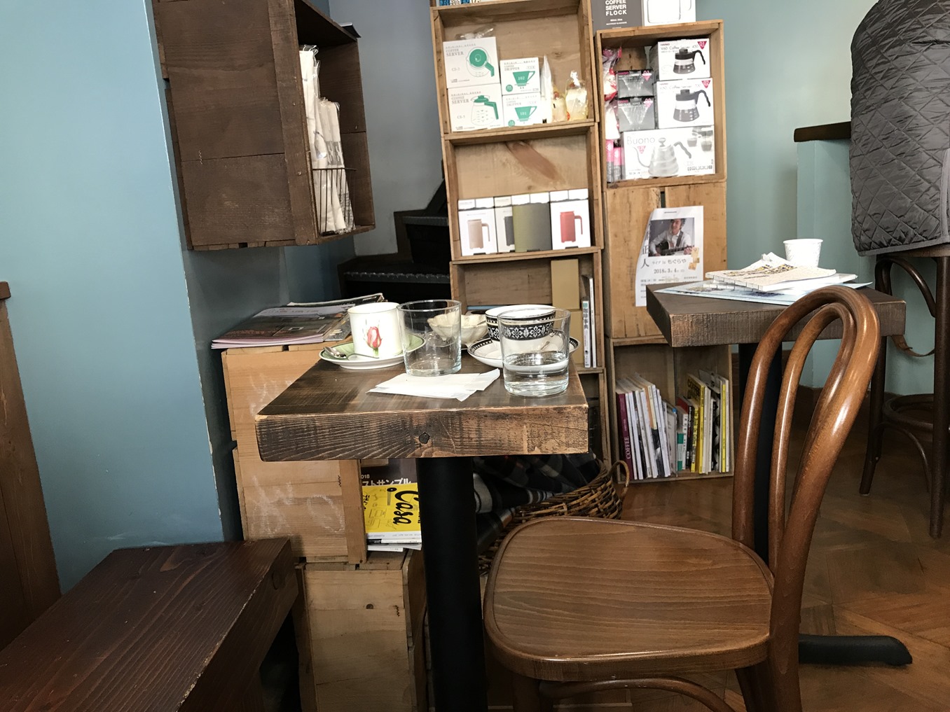 テーブル席は二人用で狭いものでして、コーヒーを置くといっぱいいっぱいなんです。