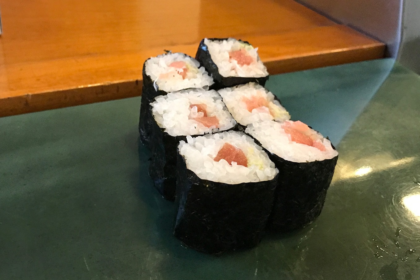 これは満足と会計をしようと思ったら、「すいません〜、まだあります。」と出してきてくれたのが、この味噌汁と巻物です。 鉄火でして嬉しいもんです。
