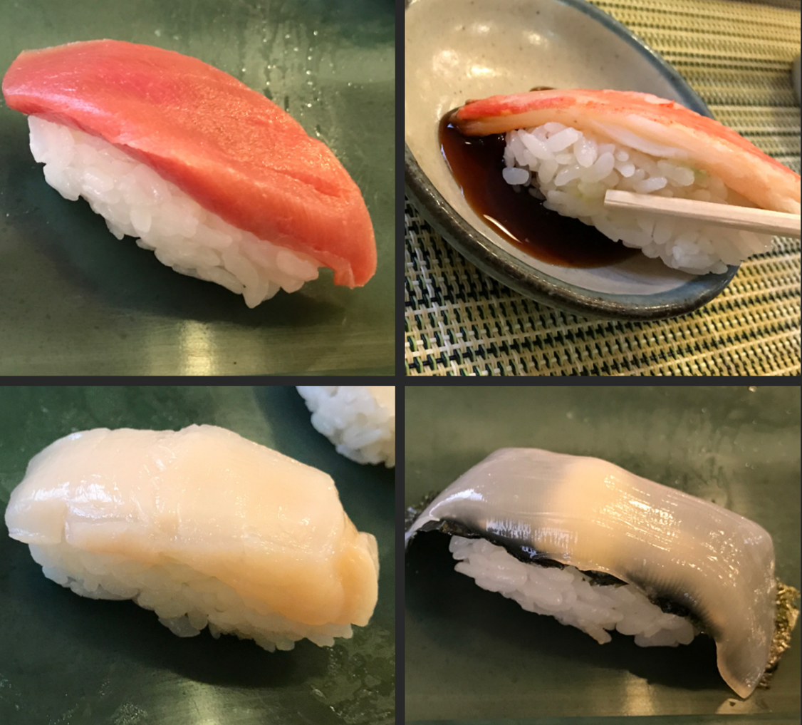 大きなカニ、身厚なホタテ、鉄火巻き