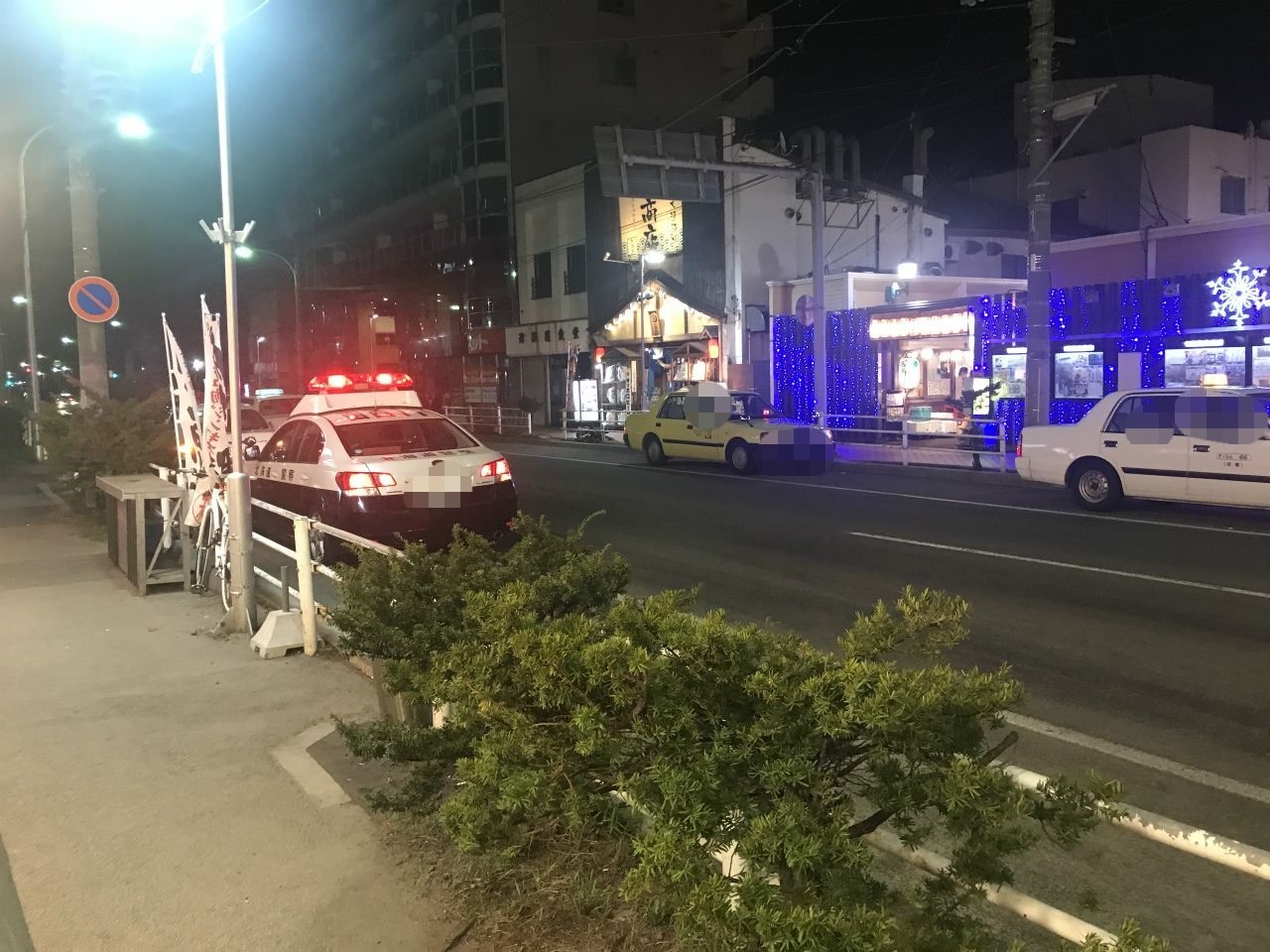 横丁にパトカーが。警察官も中に入り、喧嘩だそう。