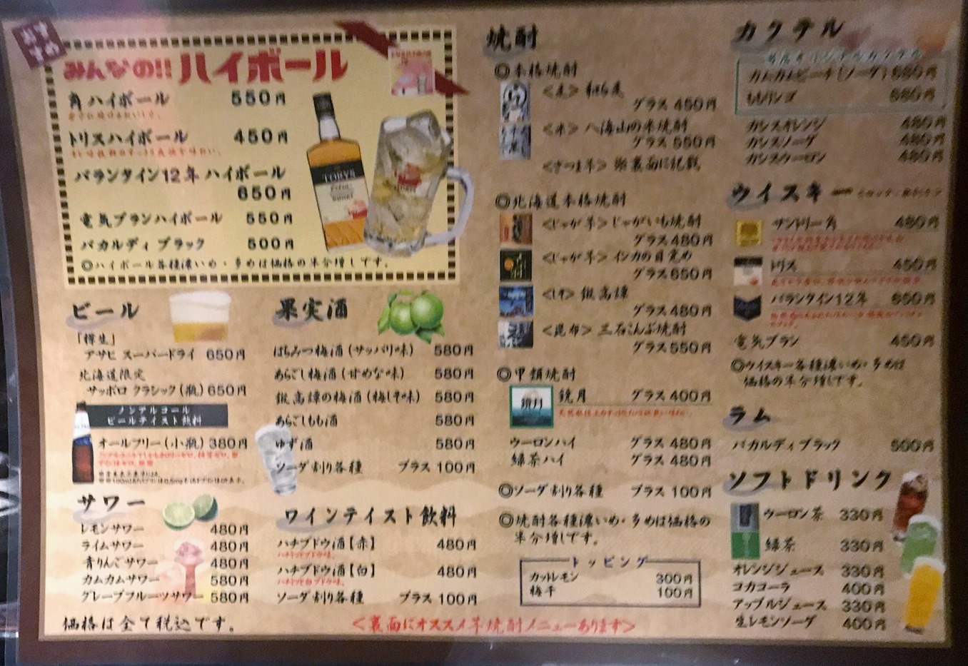 ドリンクメニューです。
