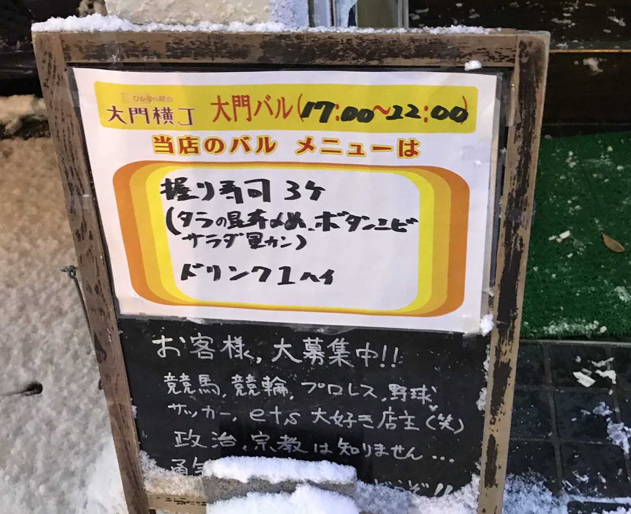 昨日の2018年12月7日(金)、雪の降る日に第48回 大門バルが開催されました。