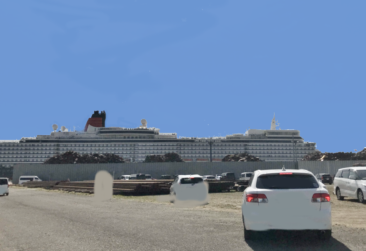 クイーンエリザベスが函館に寄港し、その姿を人目見ようと行ってみましたが、皆さん同じ考えで埠頭には車、車でした。