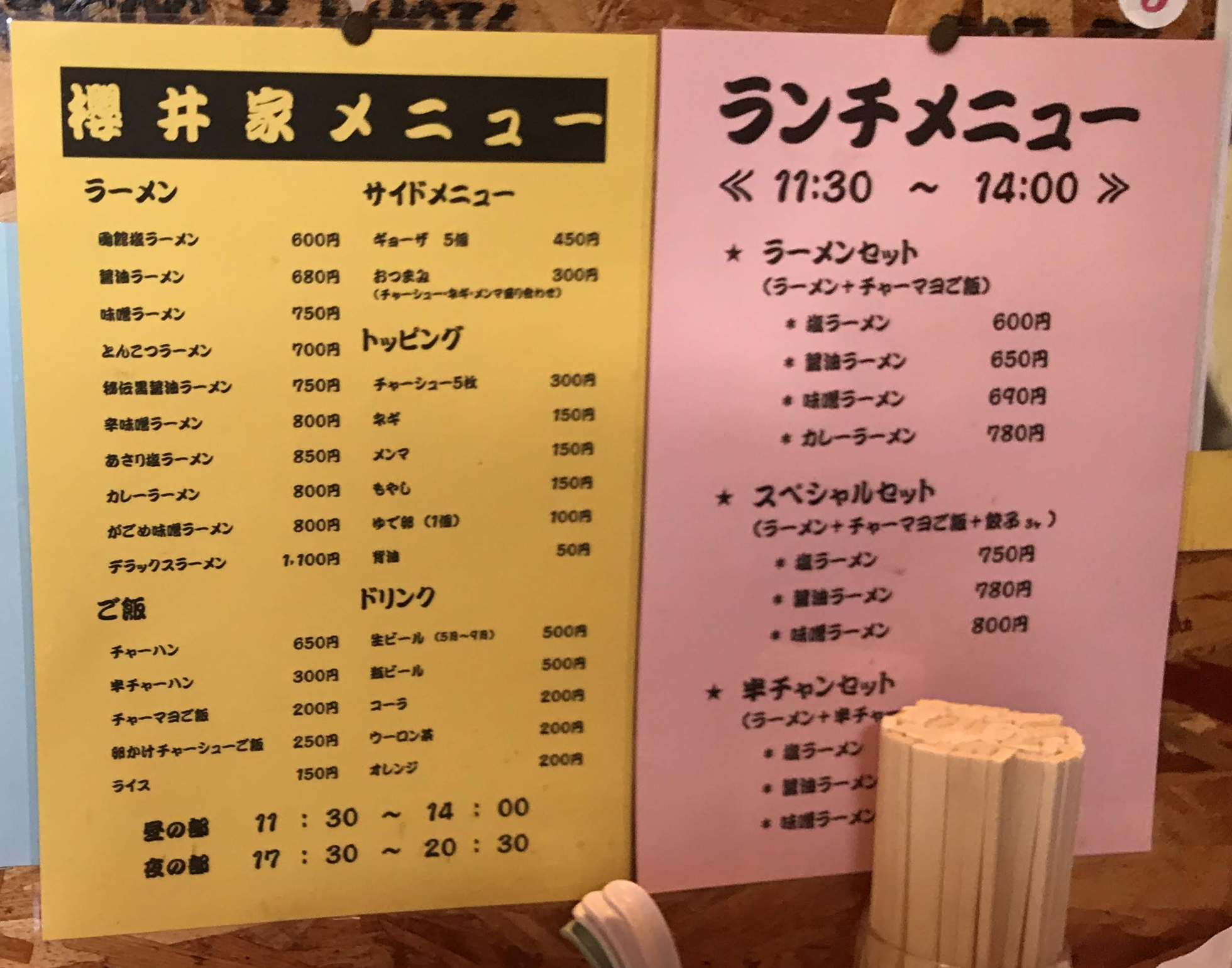 十字街の「ラーメン 櫻井家」の前を通りかかってみると、この看板があったんです。
