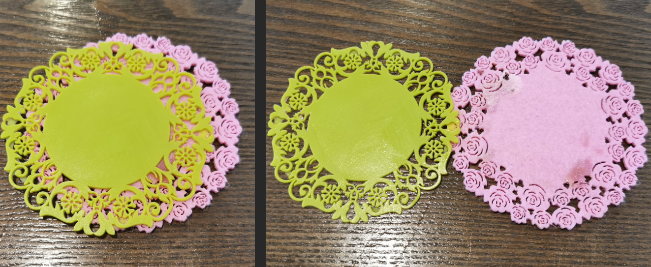 ちょっとこのコースターを見てもらいのですが、2つ重ねてあるんです。