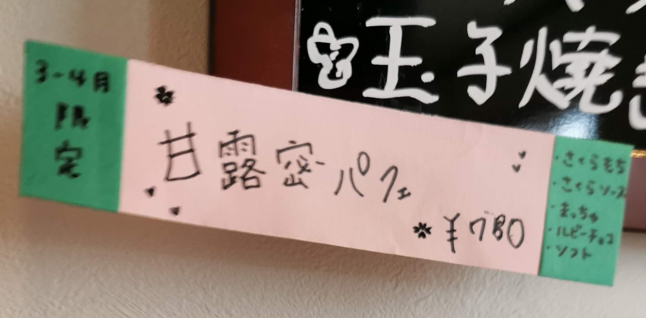 ここでは毎月のように期間限定のパフェを提供していて、今回は3月と4月の2カ月の期間限定となります。